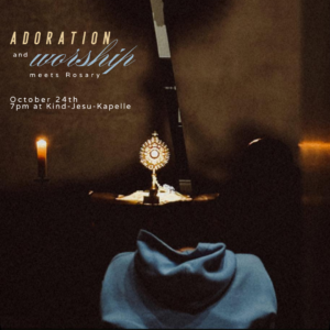 Every 24th of the month from 7-8pm we gather for an Holy Hour at Kind-Jesu-Kapelle. This month we unite the prayertime with the Worship and the Rosary Group.
